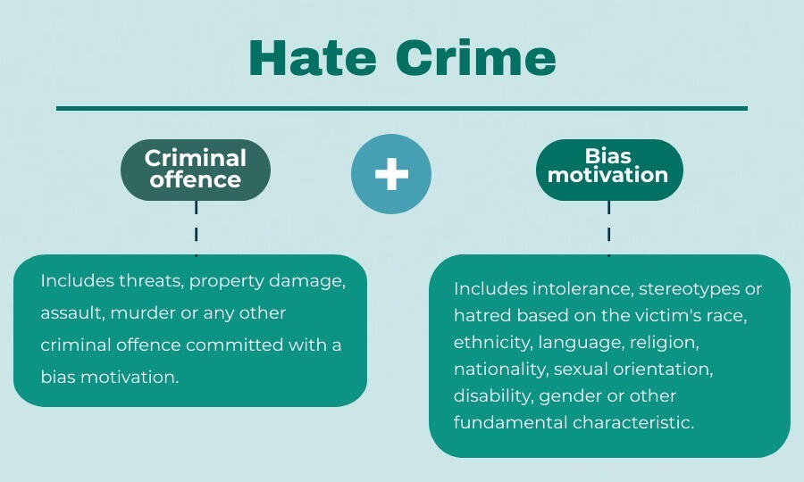 The pyramid of hatred is not an attempt to justify certain behaviours or actions, but is rather a tool that helps understand the severity of the consequences of violent acts. While the pyramid’s lower sections focus on the foundation for hate-based violence, the upper two sections relate to forms of hate-based violence, including hate speech and hate crimes, linked to gender, sexual orientation and gender identity, skin color, race/ethnicity, disability, religion or other personal characteristics.