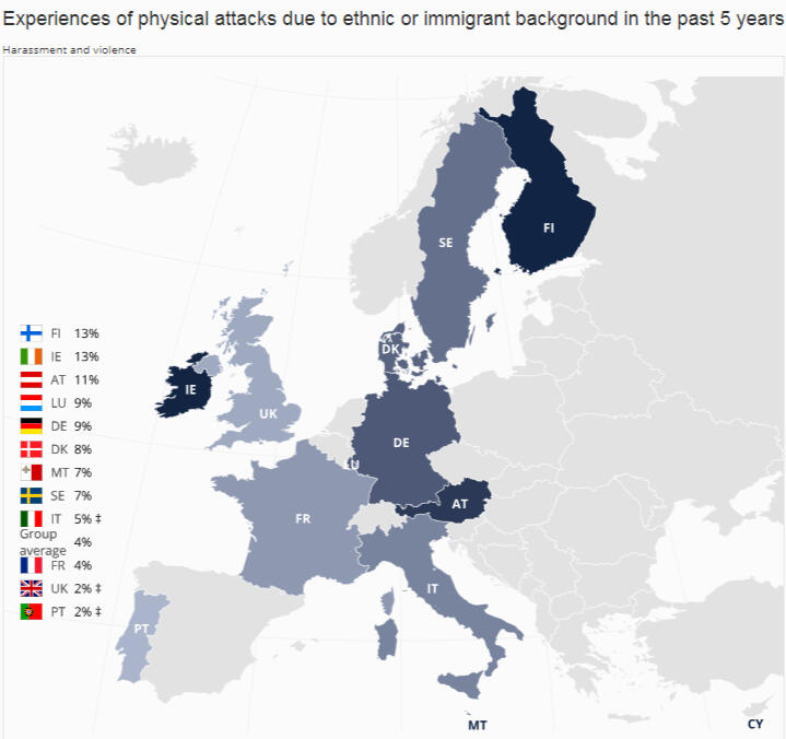 There are many negative stereotypes against migrants and refugees in European countries, especially against those coming from outside of Europe. For example, in countries that are fairly homogenous, such as Finland and Latvia, there is more fear and prejudice focused on migrants coming from outside of Europe, such as Middle East and Africa, because their appearance and culture differ more from Europeans.